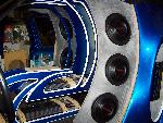 one sick ass stereo , built by Certified Sounds(Derrick Pace), orion, 6-12's, 3- 6 1/2" seperates, floating amps to the roof, 3- tvs, 7000 watts.