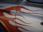 Lexus Alpine Silver, W/Prowler Orange Flames, and Blue Pinstripping.