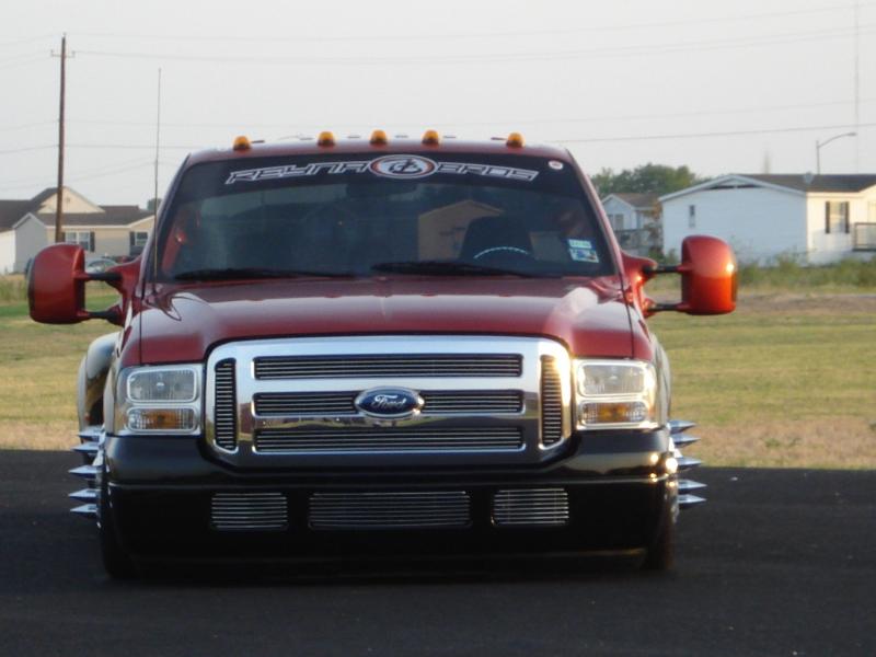 TWO TONE AMBER OVER BLACK. 07 FRONT CLIP. CADILLAC LIGHTS FRENCHED IN THE REAR SHAVED TAILGATE.CUSTOM MADE STEEL ROLLPAN, BIG BOY FENDERS WITH VENTS