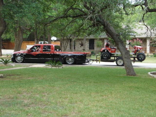 CUSTOM TWO LINK IN THE REAR WITH BAGS OVER AXLE. C NOTCH CUSTOM MADE GOOSE NECK HITCH. CHEVY SPINDLE WITH CUSTOM UPPER AND LOWER CONTROL ARMS. CUSTOM STEERING MADE WITH HEIMS AND CUSTOM CROSSMEMBER FR LOWER CONTROL ARM MOUNTS WITH HE-8 ENGINE AND TRANS HAVE BEEN RAISED 3.5 INCHES(PICS COMMING SOON)