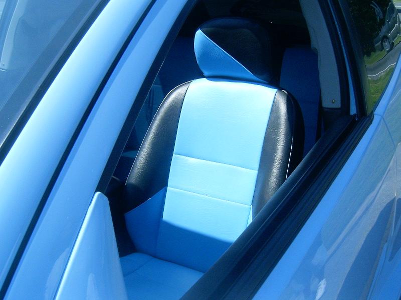 baby blue and black seats , fiberglassed tv , 2 headrest TVs