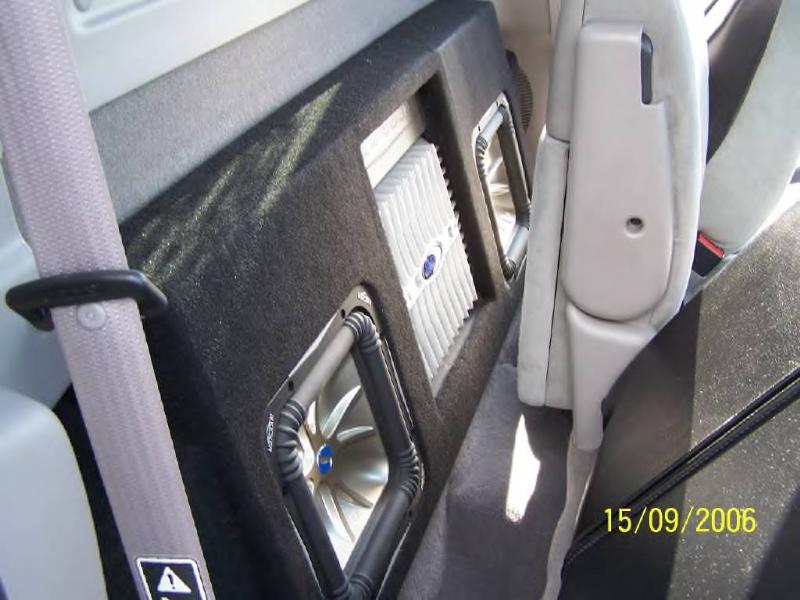 Alpine IVAD 300 touchscreen, Rockford bd1001 Two Kicker 10" L7's Custom box some blue Neon to accent, Plug in so I can use my laptops hard drive for music.