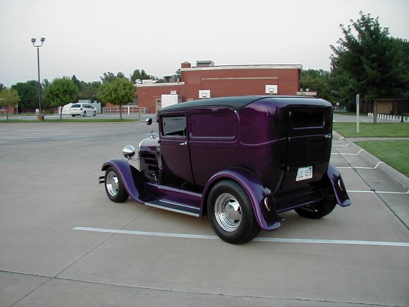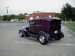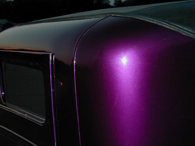 Steel Body.Pasion Plum Pearl paint with flame pinstriping. 3 inches taken out of the top. New wood and leather in roof. Fiberglass fenders and delivery door.
