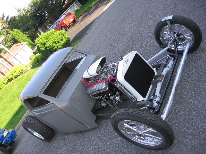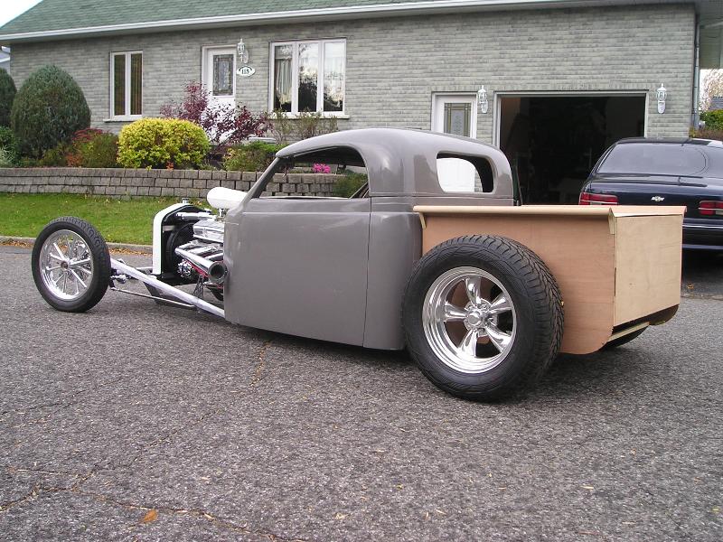 37 ford p-u cab (from OZE rod shop up here in Quebec), with convertible hardtop, 27 T radiator/grill, will have a custom made bed out back... paint to come