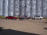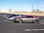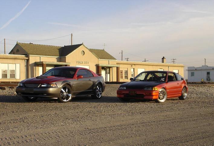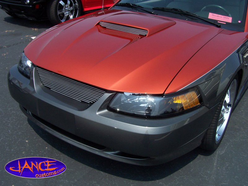 two tone paint mazda orange and ford dark grey mettalic..billet grilles- one in hood scoop the other replaces the stock grile, billet anntena