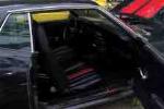 completely redone....black vinyl with red vinyl stripe down seat center
