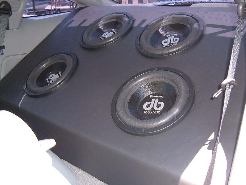 panasonic 7500u indash touch screen dvd player, all db DRIVE for the system, 4 db platinum 1500 watt 12's, 2 1200.1 db platinum mono amp, all db platinum highs run off a db platinum 120.4, db drive 8 inch door subs run off a db drive 120.2, custom built box for 4 12's where the back seat use to be