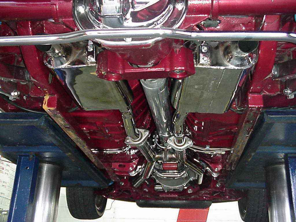 Everything is chromed or painted. Entire block is painted and detailed. 302 block, gt-40 intake, BBK 75mm throttle body, Pro-M 77mm mass air, 24lb injectors, tfs valvetrain/heads, E303 cam, Edelbrock gear drive, water pump, etc. 4 core radiator, Mac 2 5/8" headers, entire 2.5" exhaust is chrome plated, 5 spd. transmission, 3.73 gears, everything is done