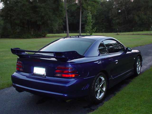 Blue Sapphire color. Full Saleen kit/s351 composite hood. SR wing and S281 wing(not yet painted!) Side scoops...shaved antenna and all markings. Billet grill. Catz XLD lights.