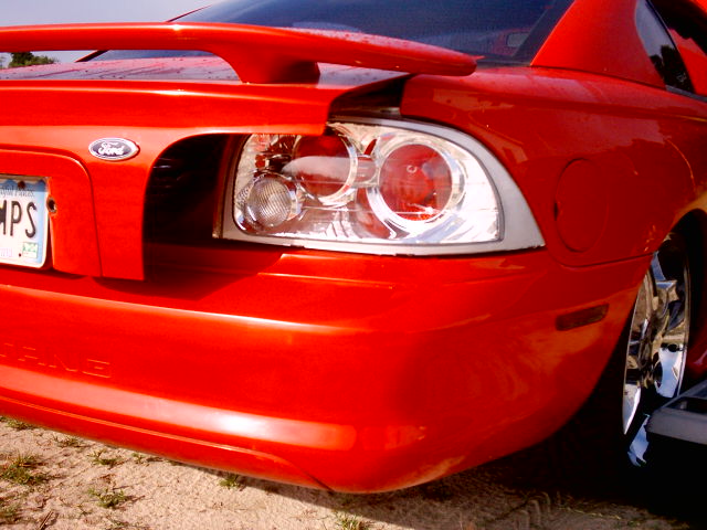 Fresh torch red paint projectors on front, altezzas on back and back custom reversed trunk