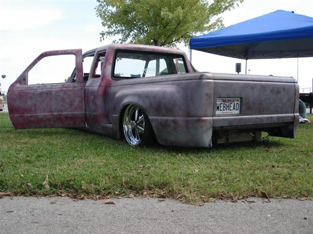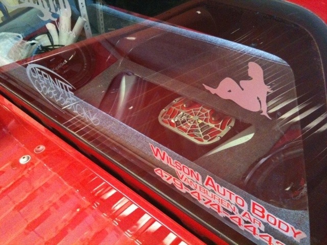 CLEAR REAR WINDOWS SWAP, ONE-OFF LASER CUT SPIDERWEB GRILL, CLEAR FRONT CORNER LENSES, STREET SCENE MIRRORS, EDGE FRONT BUMPER WITH LICENSE PLATE HOLES SHAVED, EDGE VALANCE AND FOG LIGHTS, FLARESIDE BED SWAP, SHAVED AND RELOCATED GAS DOOR, SHAVED TAIL LIGHTS WITH LEDs UNDER THE TAILGATE,SHAVED COWL, SHAVED FENDERS, RAISED BED FLOOR 8.5", SHAVED AND RELOCATED TAILGATE HANDLE, SHAVED TAILGATE EMBLEM, ONE OFF BILLET WEBBED STEPSIDE STEPS, 35X35 STREETBEAT CANAVAS RAGTOP, SHAVED FENDERS, SHAVED DOOR HANDLES, SUICIDE DOORS, SHAVED CAB SEAMS, SHAVED CAB WALL, 60 CHEVY TRUCK FRONT BUMPER NARROWED 15" FLIPPED AND SHAPED TO BEDSIDES, REPAINTED AT WILSON AUTO BODY IN VAN BUREN, AR.