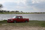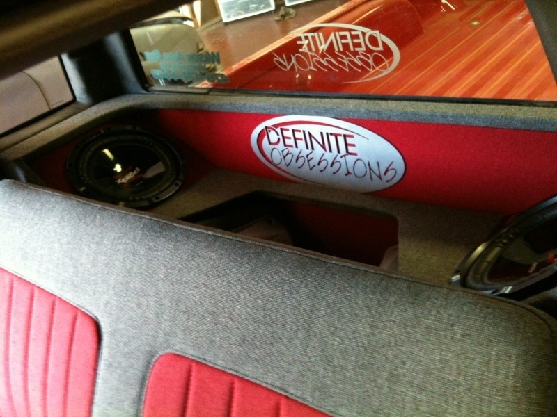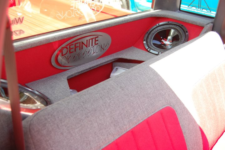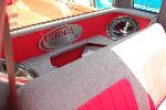 1ST GEN S-SERIES BENCH SEAT, VARIOUS PARTS COVERED IN RED AND GREY TWEED, COLORADO CUSTOMS BILLET CRAWLEY STEERING WHEEL WITH RED LEATHER HALF WRAP, APC WHITE FACE GAUGES, NU IMAGE A/C PANEL, CHROME PLATED A/C KNOBS, ONE-OFF BILLET WEBBED DOOR SILL PLATES, 3 KP AIR GAUGES GLASSED INTO RADIO BEZEL.