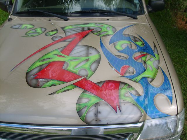 shaved tailgate handle, shaved gas door, shaved logos, custom graphics on hood.