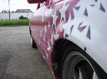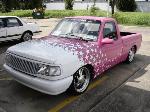 white and magenta custom paint job,laying frame soon,bagged at 4 corners on slambags , 2 link in the rear ,khaki and white vinyl and fiberglass interior,a few billet pieces here and there, 4 8" jl audio w3's blown through from bed, checkmate flushmount tonneau cover, prospecting for AcrophobiA now, maybe upgrade to 20s