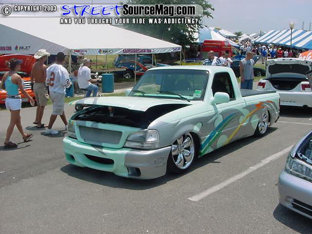 split color platnium silver and pastel green w/ purple pearl and graphics all shaved except tail lights and mirrors.extang bed cover