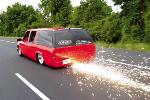 Shaved Door Handles, rain gutters, attenna, squiters, Grant Kustoms Combo with 2-12" Hi Tech Led's, shaved thrid brake light, 10" Hi Tech Led, shaved gas door, shaved tail lights, painted Mercedes Quartz Blue