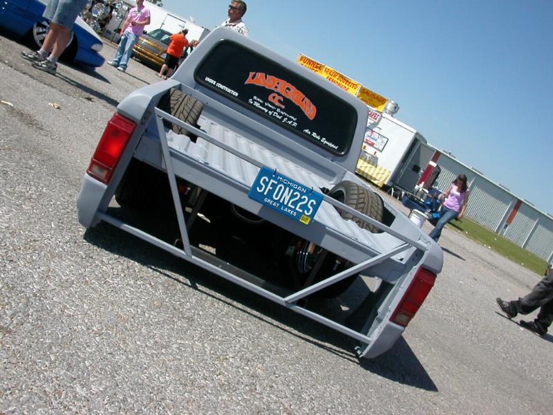 Shaved.... doors, cowl, gas door , full skin, 3rd brake, and other crap. Probably some stock tails. 2 tone paint scheme is set. Tilt bed.