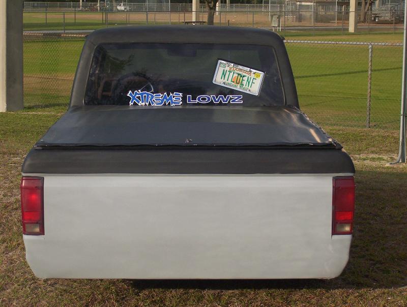 shaved firewall, front turn signals, fuel filler door, bed rail stake pockets,doors, emblems, full tailgate skin combo,3rd brakelight, with a 10 gal fuel cell in the bed, lexan window w/ tilted tag box and a soft top tonneau cover.