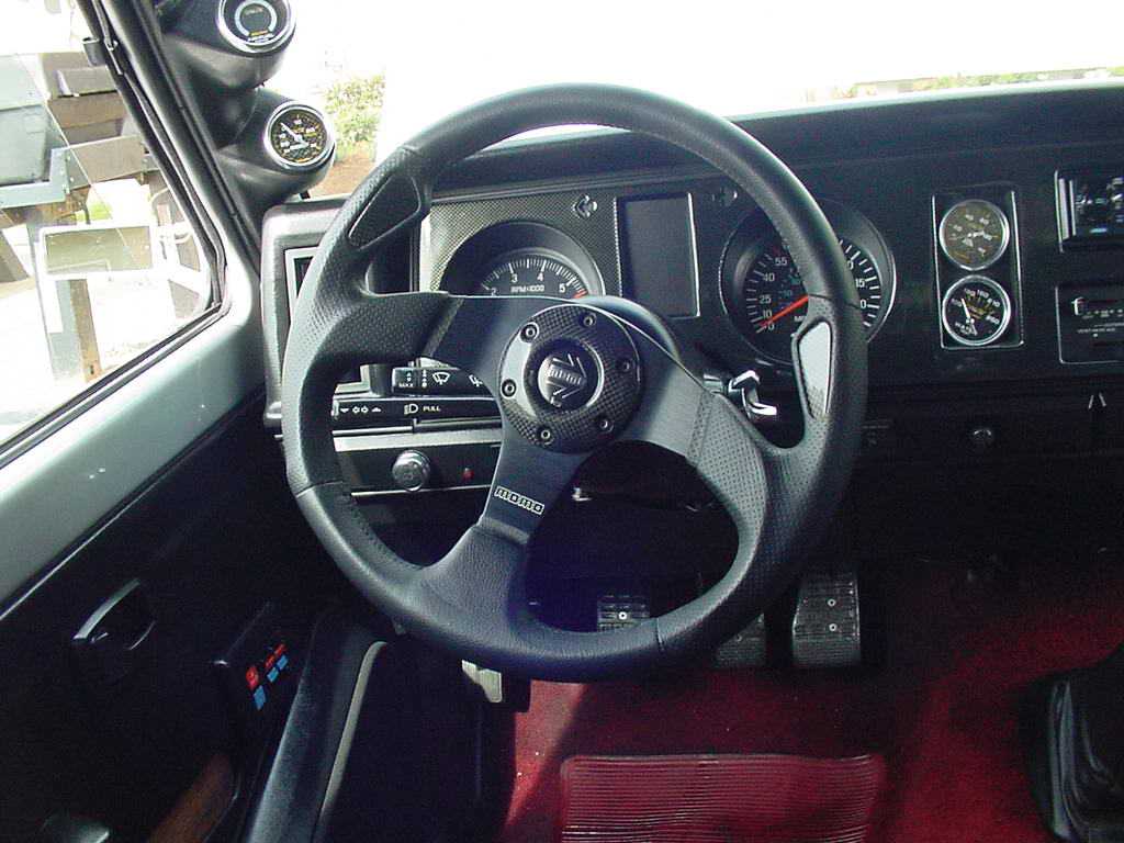 Recaro SRD buckets, MOMO Jet wheel, pedals, carbon fiber dash, Autometer gauges(oil and water-mech, AF and fuel elec), custom door panels and headliner