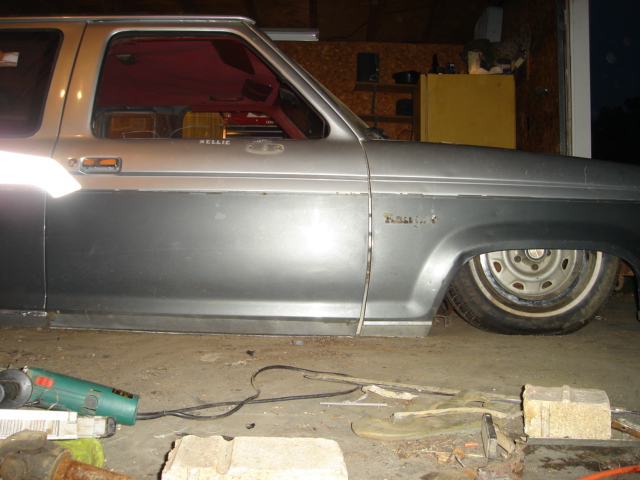 4 in stock floor body drop and 3in tradional, toyota front end conversion, air ride..... and it lays doors