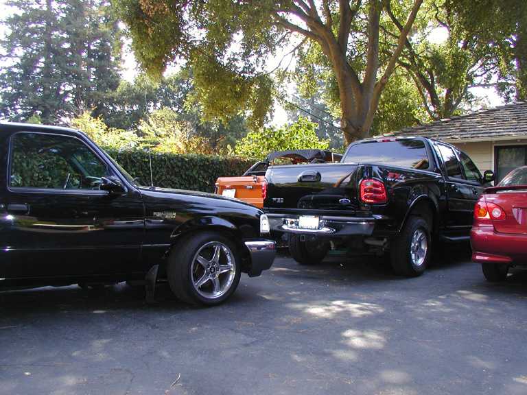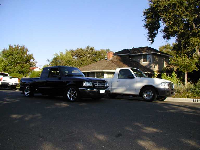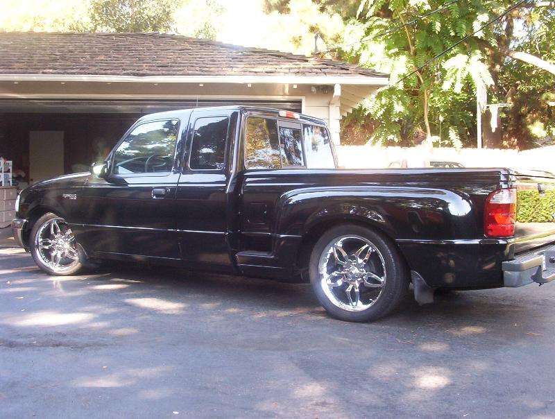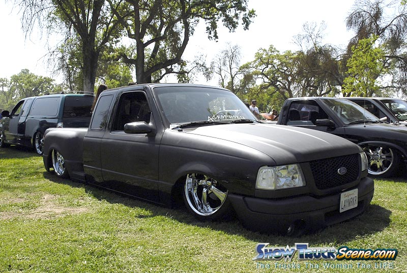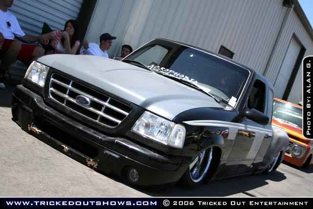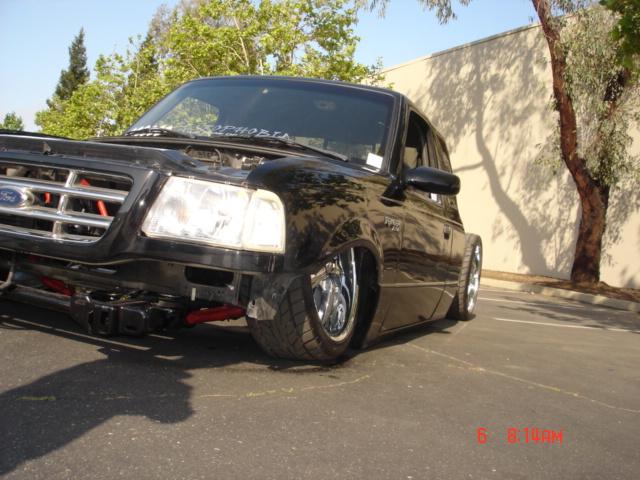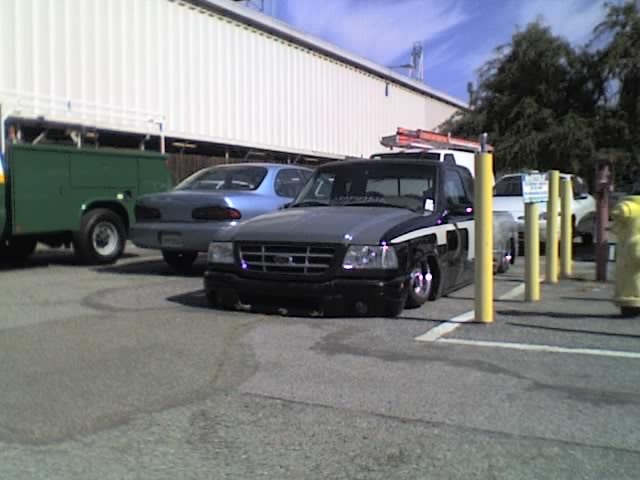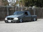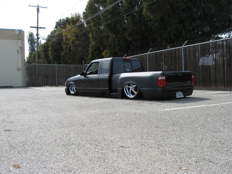 Eli @ Air Concepts Fab did a Stock Floor on a Powder coated frame. Raised bed sides, Sheeted bed, Shaved Handles, Grant Customs Roll pan, SS mirrors, clear corners, Edge Hoo, Bumper, and fog lights...Lots-A-shades of black!