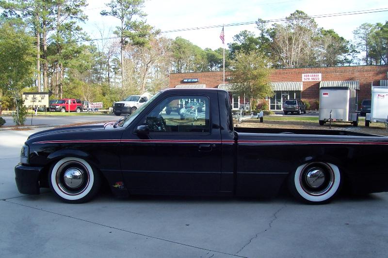 Full air ride suspension, Slam bags all the way with E valves. Custom triangulated 4-link in the rear.