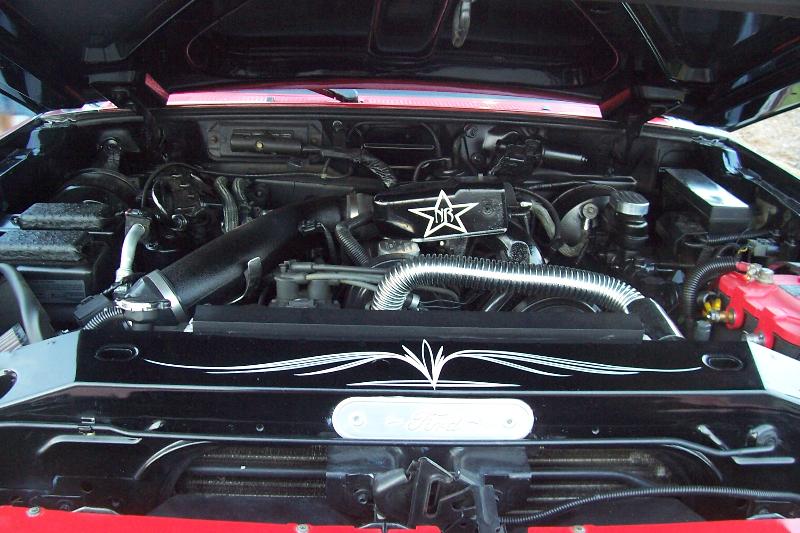 Dash smoothed and painted black, pinstriping on air bag cover and grant steering wheel seats wrapped in emu and leather with dash accented in black emu.