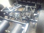 3" I-beams, Toxic shocks,Firestone 2500's on all 4 corner's, 4-15mm SMC valves-lift and 4-10mm SMC valves-dump, 1/2" lines, 2-5 gallon tanks, 2-VIAR 450 compressors,10 switch box, bag on bar 4 link setup, home-made 2x4 step notch, home-made tranny X-member and radius arm relocators./ 3" body drop\---7" of lift up front and 14" out back