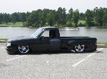 Black, with black primer spots,shaved tailgate handle, shaved third brake light, shaved door handles, shaved wiper cowl, shaved gas door, eclipse hood bubble turned around backwards, diamond clear corners and headlights with 8K HID's/ 2008 tail's