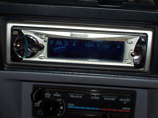 Panasonic day/night 65wx4 head unit, Memphis 3 1/4" 2-way door speakers, Memphis 6"x9" 2-way speakers in the back, 4 gauge power & ground wire running an 1,100 watt memphis amplifier which is running a 15" square L7 Kicker Solo-Baric.