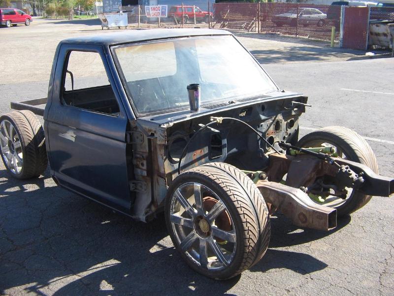 S-10 front cilp, S-10 rearend, 2X3 square tubeing, frame airtank, RE-8 all four corners, disc brakes all four corners, 1/2 danz valves,