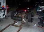 air of course.frame from firewall back to a thunderbird irs, and modified djm lowers up front(and djm uppers).cutting all the front crap off and rebuilding with mustang2 goodies