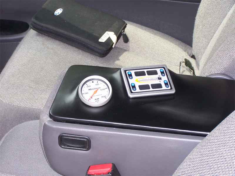Fiberglass console, stewart warner air guage, airride ridepro-e controller, upr shift knob