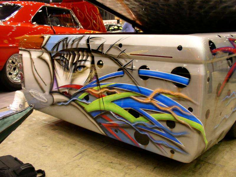 Shaved cowl and frontend off 2001 ranger rearend shaved,gas door,antenna,and tailgate handle.50 color abstract painted by customshop in ill.custom tonneau cover also made by cs.