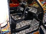 full black leather and cheeta print accents with 97 mustang dash and center console and custom flo-fit seats.