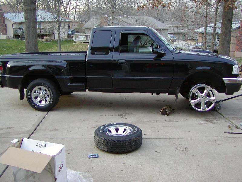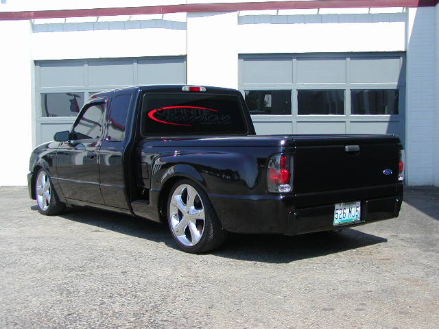 Painted side steps on bed, antenna base, Ranger emblems on fenders. Street Scens Cal-Vu Signal mirriors, Roll pan, shorty tenna, speed grills,