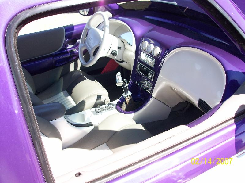 97 mustang dash and console, custom doorpanels, 2000 trans am seats covered in grey leather and white suede