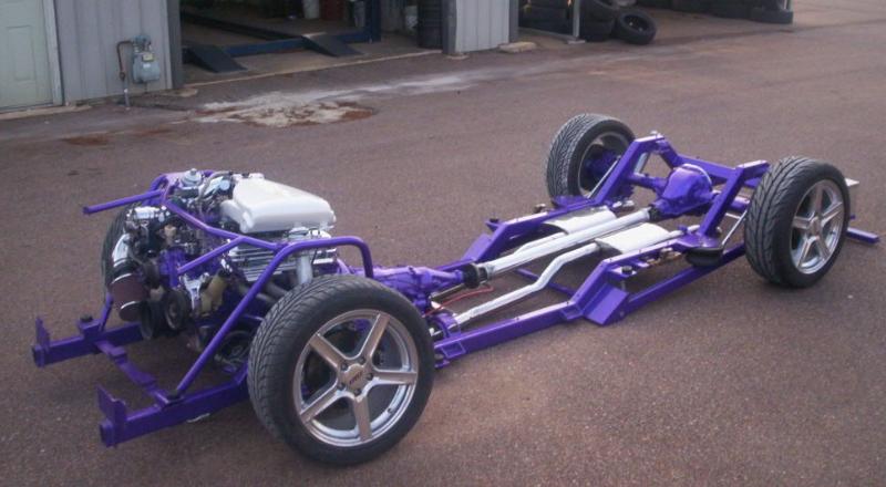stock floor b/d 2x3 frame mustang 2 front 8.8 mustang rear end 355 gears, 2600# bags, belt driven, 20 gallon aluminum fuel cell, front and rear disk brakes