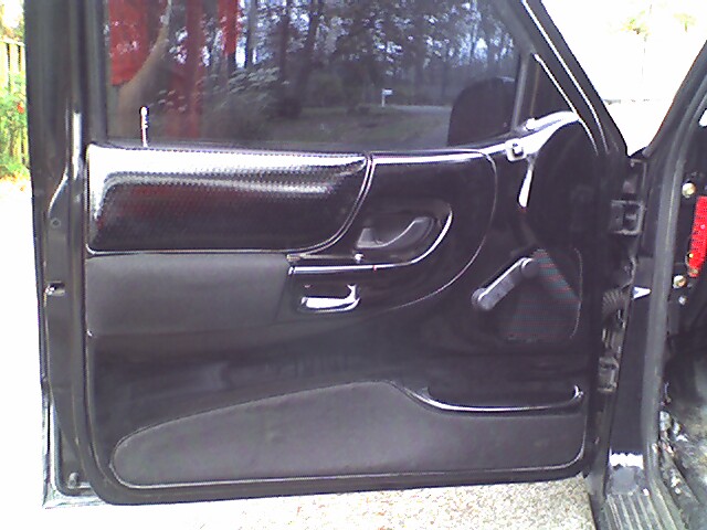 Cd player w/ 7in. Screen mounted on rear view mirror post.