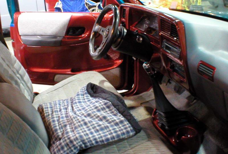 shaved emblems, door handles, tailights, 3rd brake light, antenna, talgate handle, bed stake holes, gas door and relocated to inside bed, cab seam lines. Added 98 smooth front bumber as well as 94 Splash grill. Molded in rollpan.