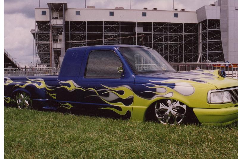 shaved windows,handles,break light,wiper cowl,rear window seal, and mirrors.also a custom hood and a bed insert