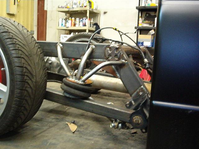 Air ride, 1/2" everything, 6 gal. for front, 3 gal. for rear, 3/4 hp compressor,1/2" aluminum hardline, 2 1/2" zeed front clip, new frame from firewall back, 2-link with z-link, mustang gas tank in rear