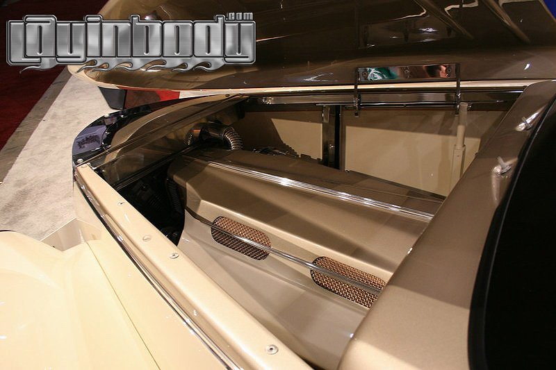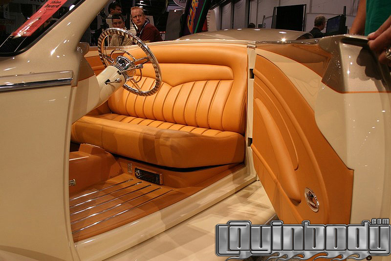 Custom sculpted panels by Stoked Out Specialties, BAD steering wheel, lotso f one off aluminum, custom gauges by classic instrument