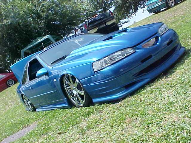 shaved side moldings,shaved antenna before i sold it.its also house of kolors kandy blue with chrome micros flakes flamed mirror tint going threw the 2 side windows with full xenon ground effects and a 97 front end conversion and a 97 ram air hood shaved trunk lid no inner taillights and no tag