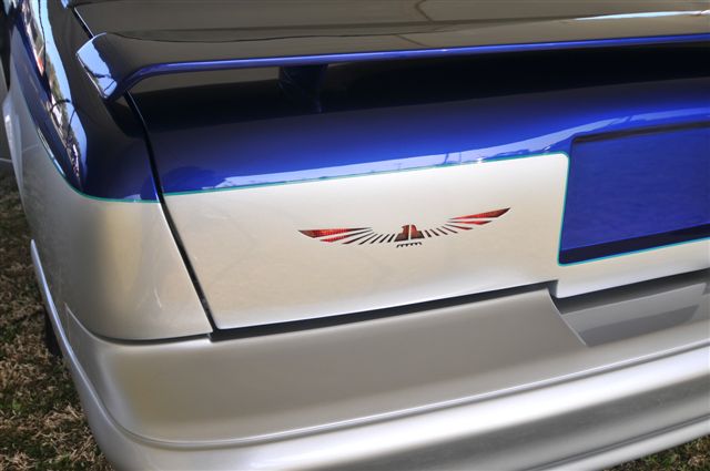 Basecoat is Ford SVT Blue over House of Kolor Orion Silver trimmed in Bahama Green