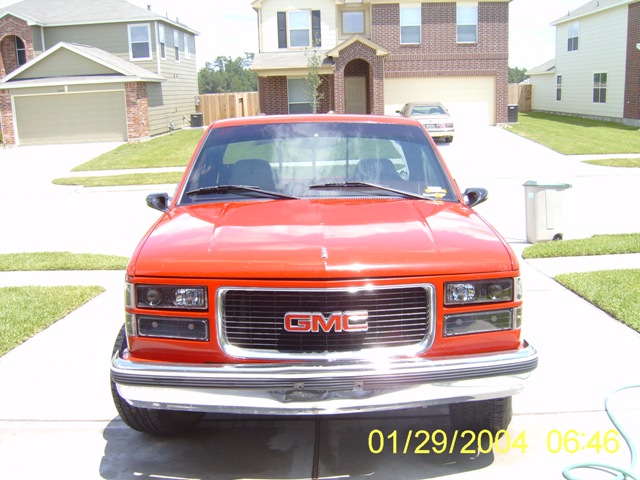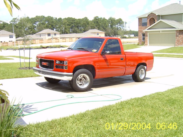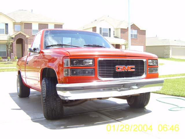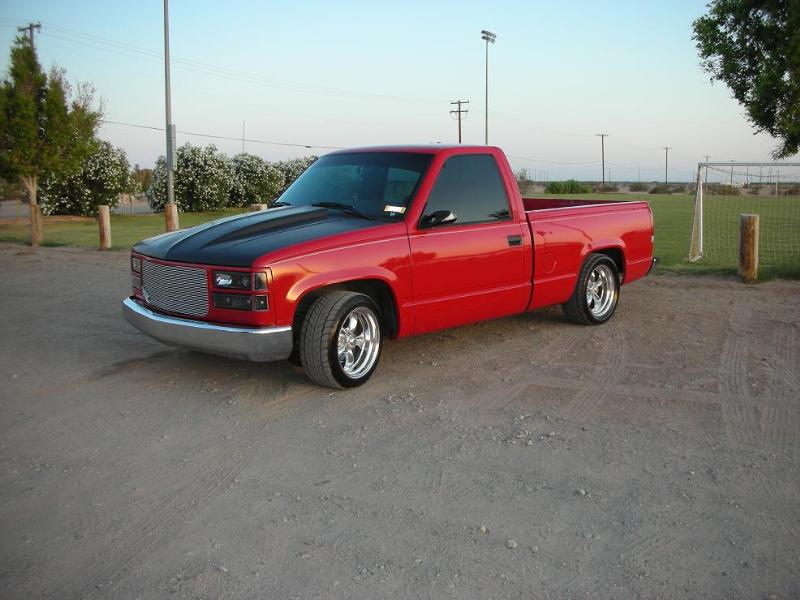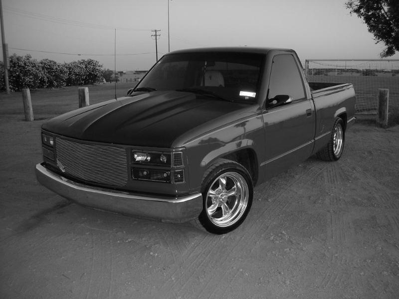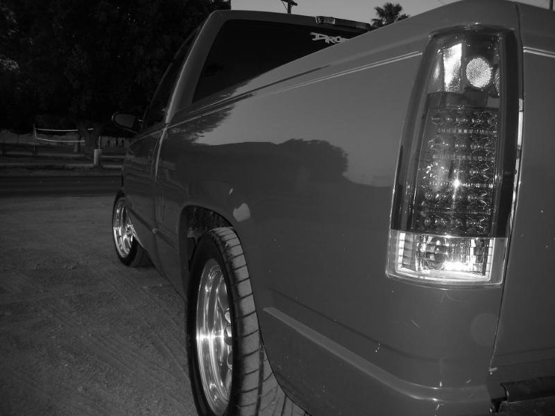 Projector Headlights(black background)with 10k H I D covertion,LED brake lights, 3'4' drop from belltech, 31 bar hi dens. Billet Grill, New front smoothie bumper, and a 2inch cowl hood
