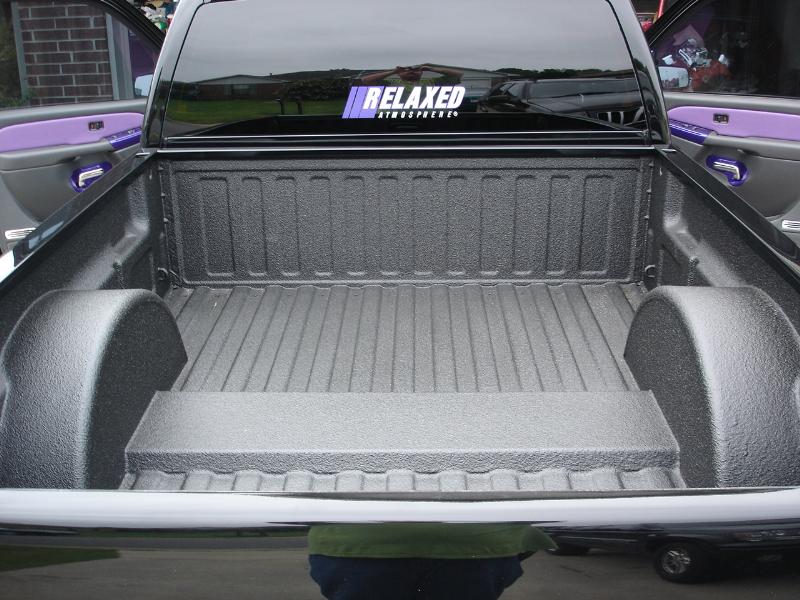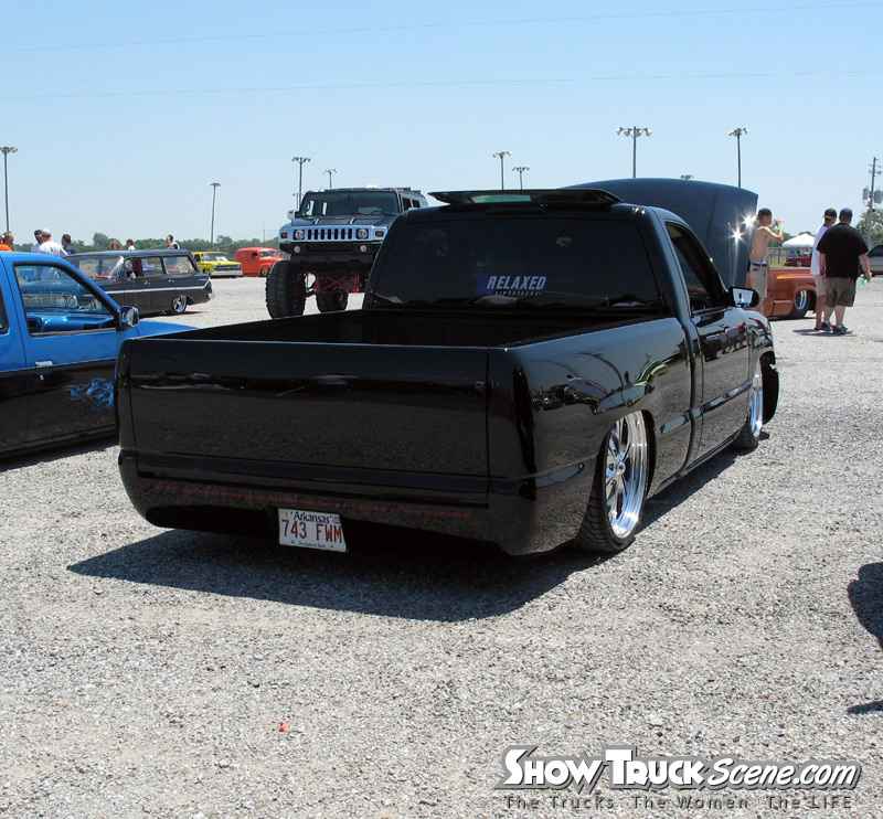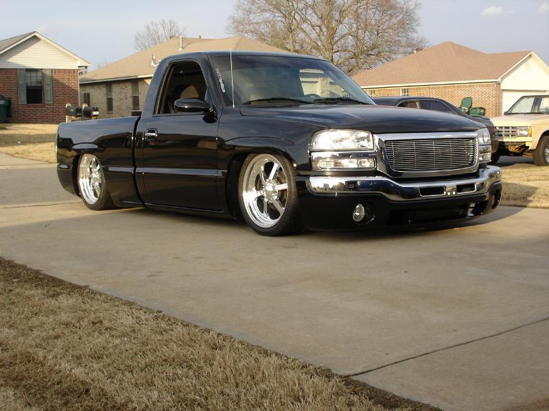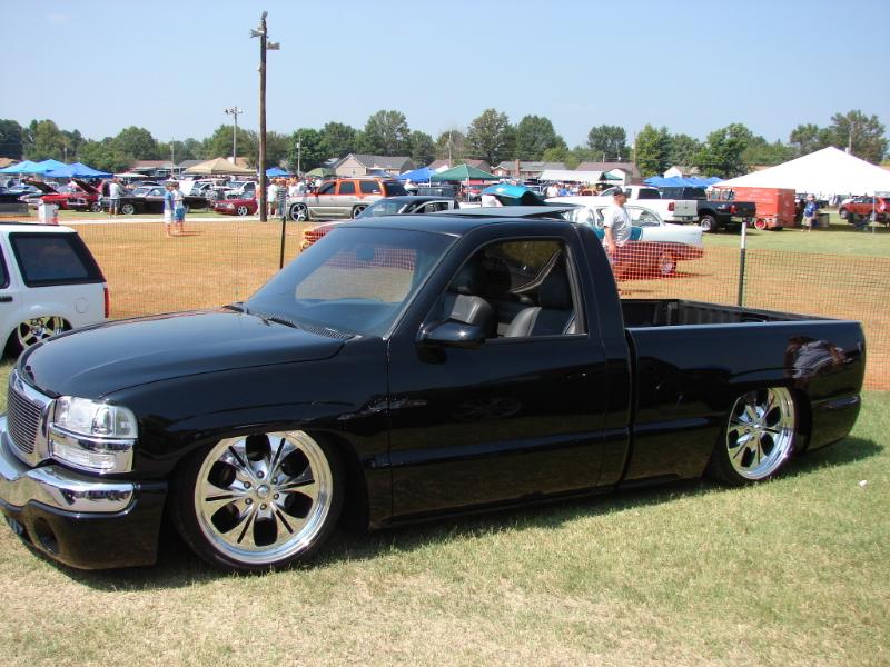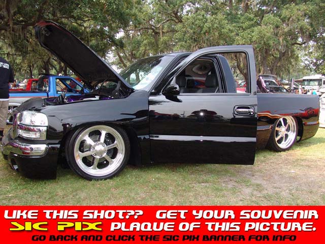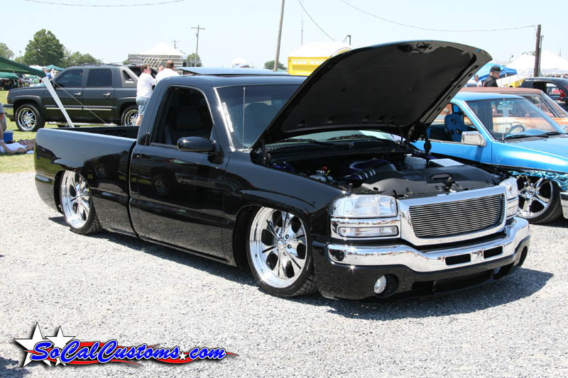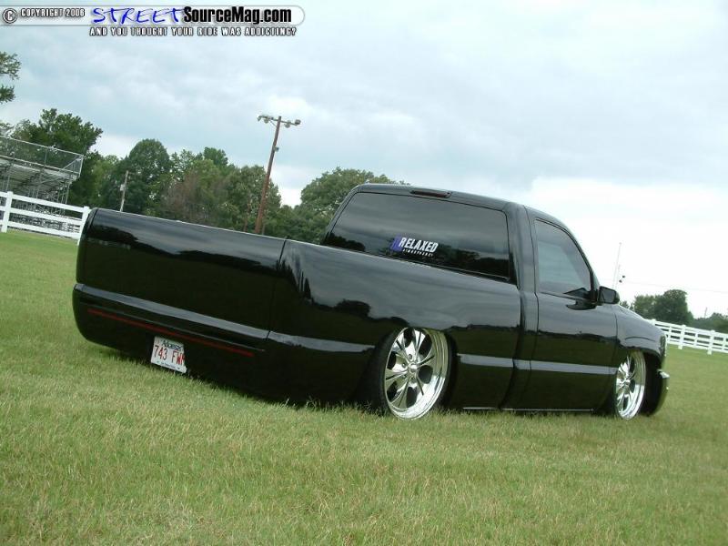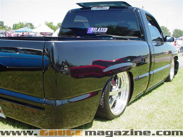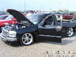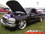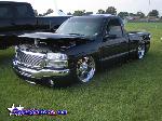 ///Billet grill, street scene sport mirrors, sir michaels roll pan, shaved door handles, tailgate handle, taillights, stake pockets, roll pan molded in, 56" Hi Tech LED, cleared headlights, clear parking lights, billet antenna, 41" Wabasto sunroof, some old school pinstriping on the hood and tailgate