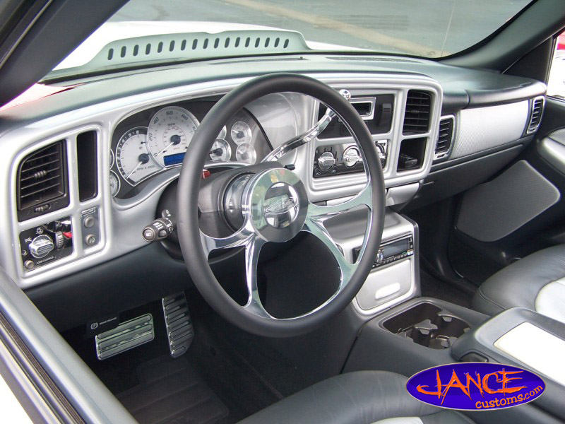 ///Billet steering wheel,pedals,sill plates,vents,light cover,shifter,doorhandles.painted pieces.Escalade gauges,2-tone leather