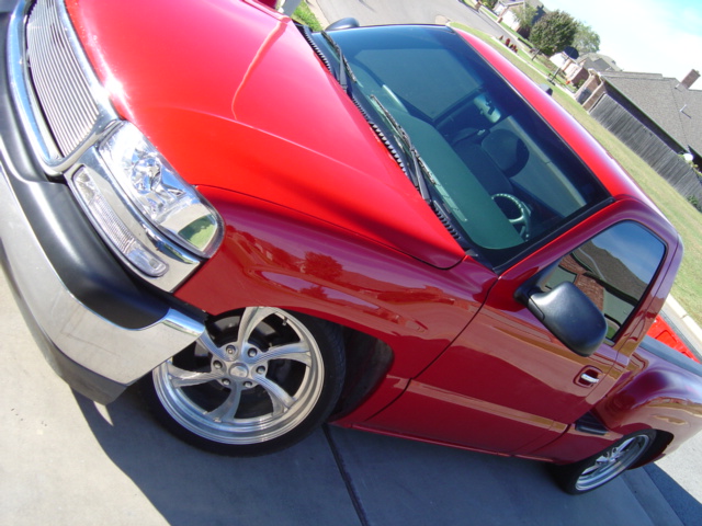 SOLD!! Stull billet grille, Escalade door handles, Candy Red tail lights, Cleared parking lamps, Cleared out Denali Projectors, and roll pan