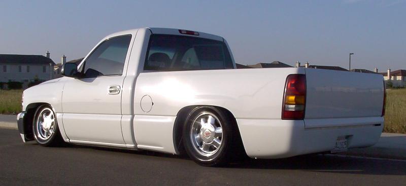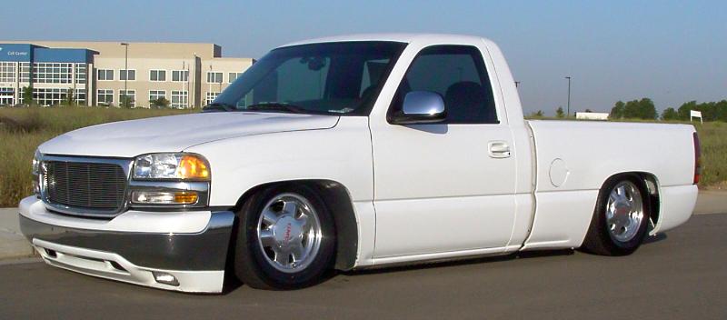 White standard cab short bed. Tossed the tow hooks! Removed chrome trim and all badges. TRENZ grille.